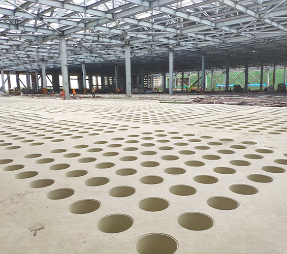 結構留孔:作為模板,澆筑混凝土后形成均勻圓形孔洞,構成奇氏板(華夫板) 結構。